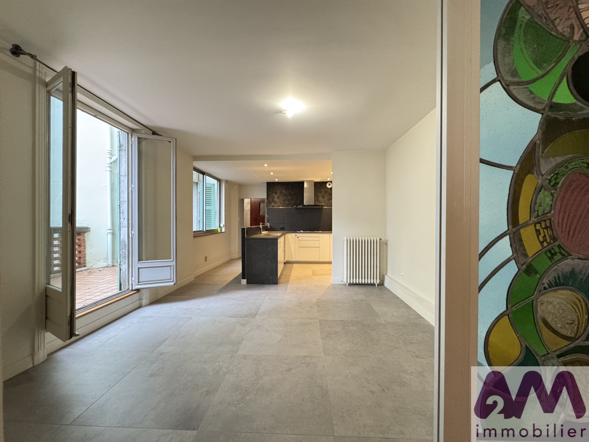 A2M immobilier vous propose en ultra centre de Chamalières, à proximité des écoles, des commerces et des transports en communs, un appartement de 109 m2 habitables. Cet appartement comprend une entrée, une pièce à vivre avec cuisine ouverte sur la salle à manger donnant accès à la terrasse, un salon et un séjour dont l'un peut être transformé en chambre ou bureau, deux chambres dont une avec salle d'eau privative, une seconde salle d'eau, une buanderie et un wc séparé. En complément l'appartement dispose d'une terrasse de 12,8 m2. A noter, l'appartement est en excellent état, il a su concerver son charme de l'ancien (parquets massifs, hauteurs sous plafonds, cheminées) tout en profitant d'éléments modernes. L'appartement est équipé du double vitrage dans toutes les pièces, d'un chauffage central au gaz à condensation économique, d'une installation électrique très récente et d'une VMC moderne. Cet appartement est vendu avec une grande cave et deux greniers, parfaits pour disposer d'espace de stockage. Possibilité d'acquérir une place de stationnement couverte en sus. La taxe foncières est de 1616 euros et les charges annuelles de copropriété sont de 916 euros. Le prix de vente est de 299 860 euros dont 3,4% d'honoraires d'agence inclus à la charge de l'acquéreur. Les informations sur les risques auxquels ce bien est exposé sont disponibles sur le site Géorisques : www.georisques.gouv.fr. Vous pouvez contacter l'agence A2M Immobilier au 04.44.44.89.10 ou venir nous rencontrer directement sur place au 15 avenue de l'Union Soviétique à Clermont-Ferrand. Tous les biens de l'agence A2M immobilier et le barème de nos honoraires sont disponibles sur notre site internet.