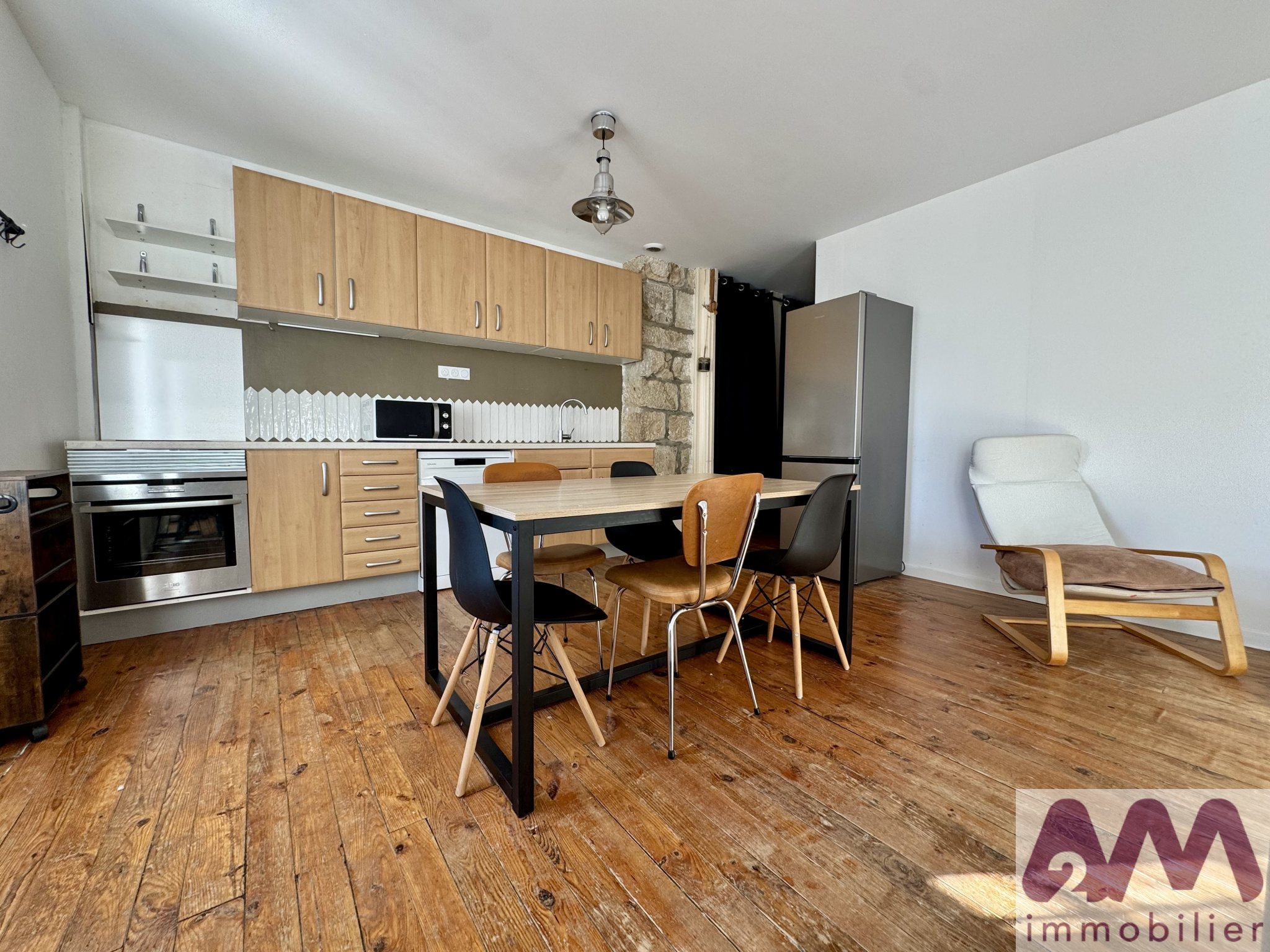 G83 - À Royat, à deux pas de la place Allard et à proximité des transports en commun, 4 bis avenue Auguste Rouzaud, découvrez cet appartement entièrement meublé de type T3 bis en duplex de 78,40 m², situé au 2ème étage sans ascenseur d’une petite résidence sécurisée et en très bon état. Il se compose, au premier niveau, d’une entrée avec de nombreux rangements, d’une cuisine équipée (placards, plaque de cuisson, four, hotte, lave-vaisselle, vaisselle) ouverte sur le séjour, d’une chambre, d’un espace bibliothèque pouvant également faire office de bureau, ainsi que d’une salle d’eau avec double vasque, WC et machine à laver. À l’étage, se trouve une chambre avec placards de rangement. L’immeuble dispose d’une terrasse commune. L’appartement allie le charme de l’ancien avec ses pierres apparentes et son parquet. Les fenêtres en PVC double vitrage et l’isolation intérieure des murs assurent un bon confort thermique. Le chauffage est de type individuel électrique. Le loyer mensuel charges comprises est de 799 €. Les charges mensuelles sont de 40 € et comprennent une provision pour l'eau froide, l'électricité des parties communes et la taxe des ordures ménagères. Le dépôt de garantie est de 1518 €. Les frais d'agence à la charge du locataire sont de 705,60 € ttc et comprennent notamment le coût de l'état des lieux d'entrée. LIBRE À PARTIR DU 2 JANVIER 2026. Les informations sur les risques auxquels ce bien est exposé sont disponibles sur le site Géorisques : www.georisques.gouv.fr. Vous pouvez contacter l'agence A2M Immobilier au 04.44.44.89.10 ou venir nous rencontrer directement sur place au 15 avenue de l'Union Soviétique à Clermont-Ferrand. Tous les biens à la location et à la vente de l'agence A2M immobilier et le barème de nos honoraires sont disponibles sur notre site internet www.a2mimmobilier.com