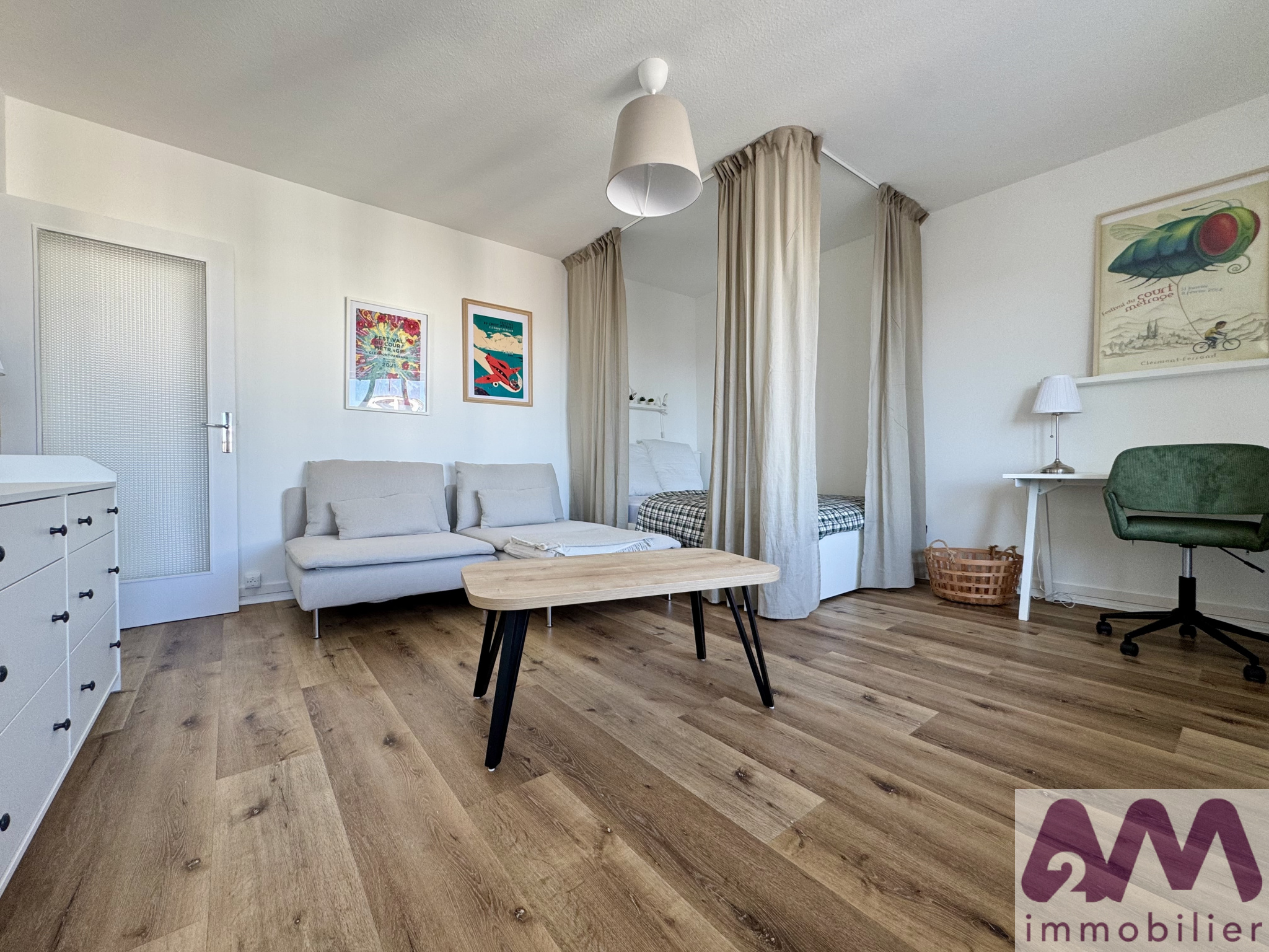 G88 - À quelques pas de la place de Jaude, en hyper-centre, 52 rue Bonnabaud à Clermont-Ferrand, un appartement de type T1 Bis de 30,50 m2. Ce bien se situe au 8ème et dernier étage avec un ascenseur, au sein d'une résidence sécurisée. Fonctionnel et lumineux, cet appartement entièrement refait à neuf est loué meublé et équipé. Il se compose d'une entrée avec un rangement, d'une cuisine équipée (placards, plaque de cuisson, hotte, réfrigérateur, machine à laver et four/ mirco-ondes), d'une pièce principale avec un espace nuit donnant accès à un grand balcon (canapé, bureau, meubles, literie neuve), d'un dressing et d'une salle de bains avec un wc. Une cave en sous-sol complète ce bien. Le chauffage est de type collectif et les fenêtres sont en double vitrage pvc. Le loyer mensuel charges comprises est de 630 €. Les charges mensuelles sont de 83 € et comprennent l'entretien et l'électricité des parties communes, le chauffage, l'ascenseur, une provision pour l'eau froide et l'eau chaude et la taxe d'enlèvement des ordures ménagères. Le dépôt de garantie est de 1094 €. Les frais d'agence à la charge du locataire sont de 274,50 € ttc et comprennent notamment le coût de l'état des lieux d'entrée. LIBRE IMMÉDIATEMENT. Les informations sur les risques auxquels ce bien est exposé sont disponibles sur le site Géorisques : www.georisques.gouv.fr. Vous pouvez contacter l'agence A2M immobilier au 04.44.44.89.10 ou venir nous rencontrer directement sur place au 39 avenue Joseph Claussat à Chamalières. Tous les biens à la location et à la vente de l'agence A2M immobilier et le barème de nos honoraires sont disponibles sur notre site internet www.a2mimmobilier.com